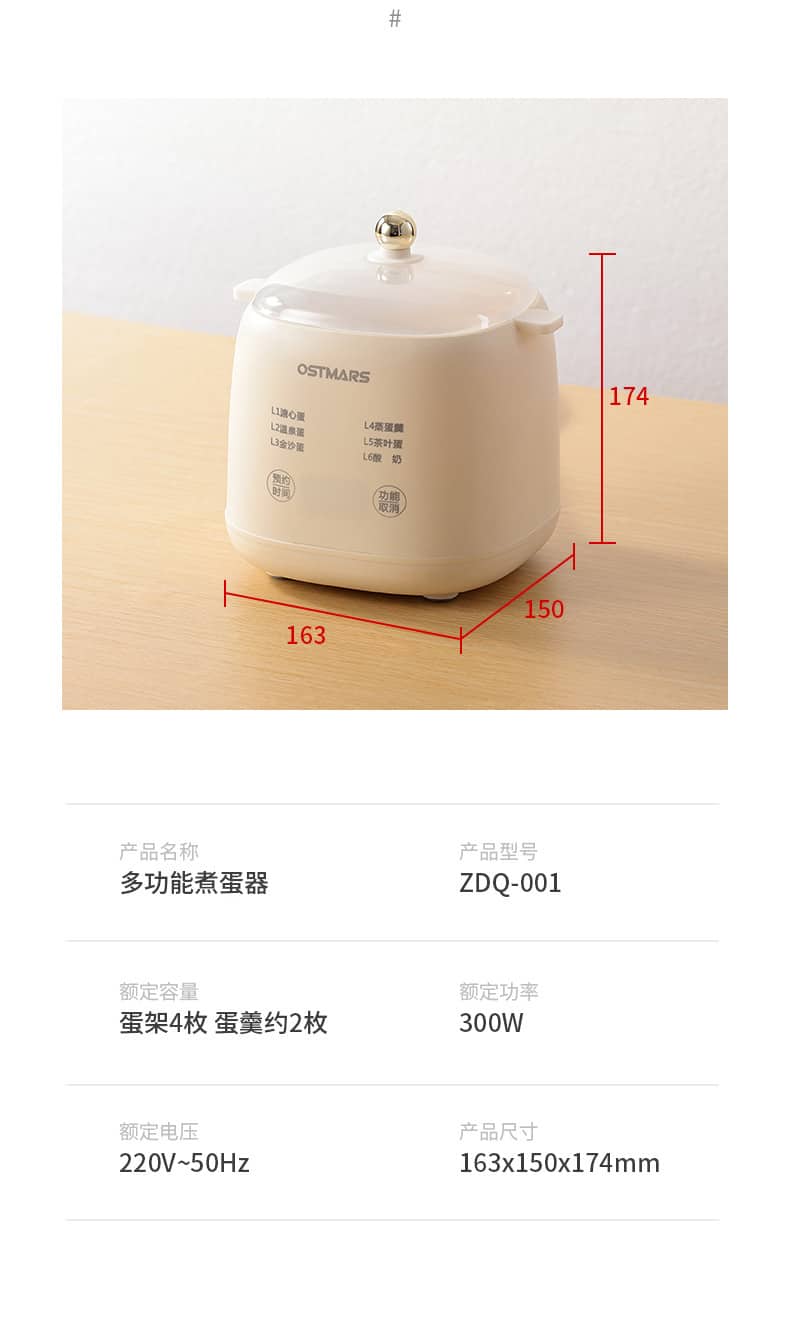 6 smart cooking modes — soft-boiled, onsen egg, custard, tea egg & more.