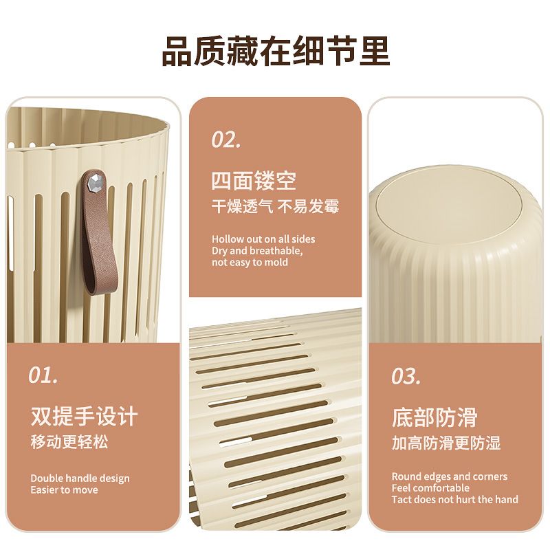 The open-slotted design promotes airflow, keeping clothes and fabrics fresh while adding a touch of modern elegance to any room. With comfortable leather-like handles, it’s easy to carry from room to room, making chores a breeze.